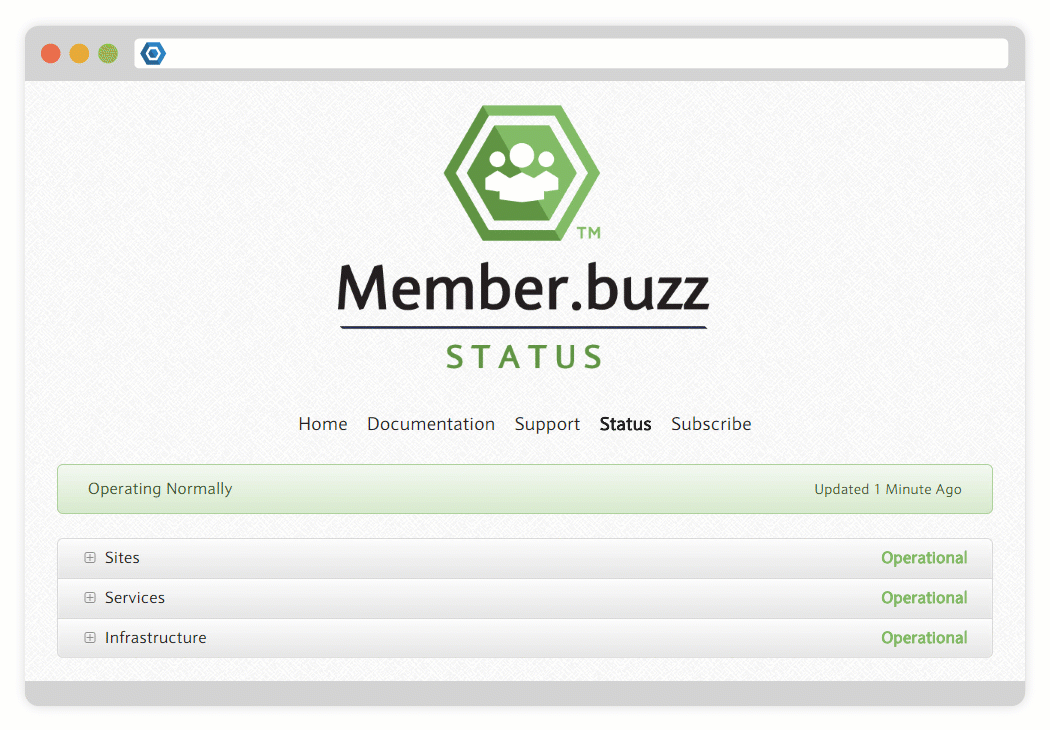 This page indicates whether Member.buzz is operating normally. Any outages will be recorded here. Users can also view the status of each part of the website.44