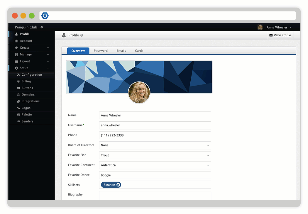 Created the ability for individual users to manage their profile and account on the dashboard.69